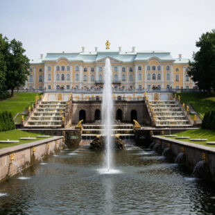 Петергоф — один из самых блистательных дворцово‑парковых ансамблей мира, воплощение имперского размаха и художественного гения петровской эпохи. Расположенный в 30 км от Санкт‑Петербурга, на южном берегу Финского залива, он давно стал символом российской дворцовой культуры. Его каскады, золочёные статуи и регулярные парки создают неповторимый образ «русского Версаля», где каждая деталь рассказывает о стремлении Петра I утвердить Россию как европейскую державу.